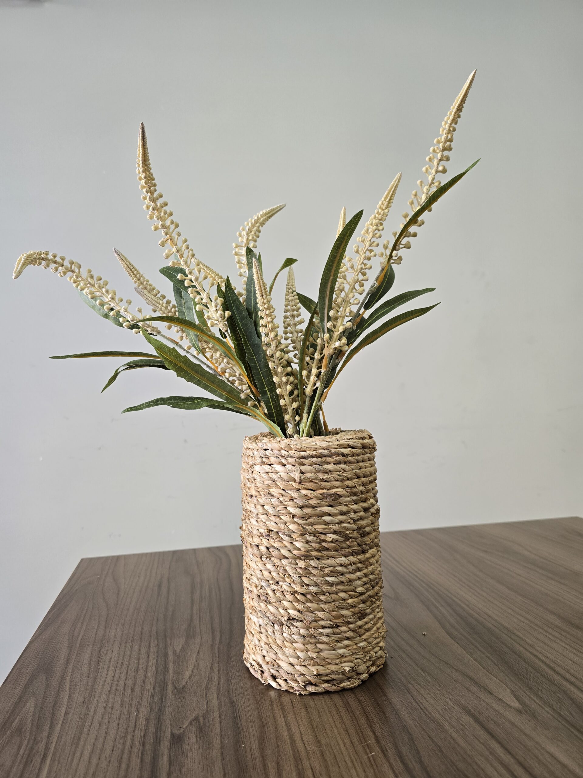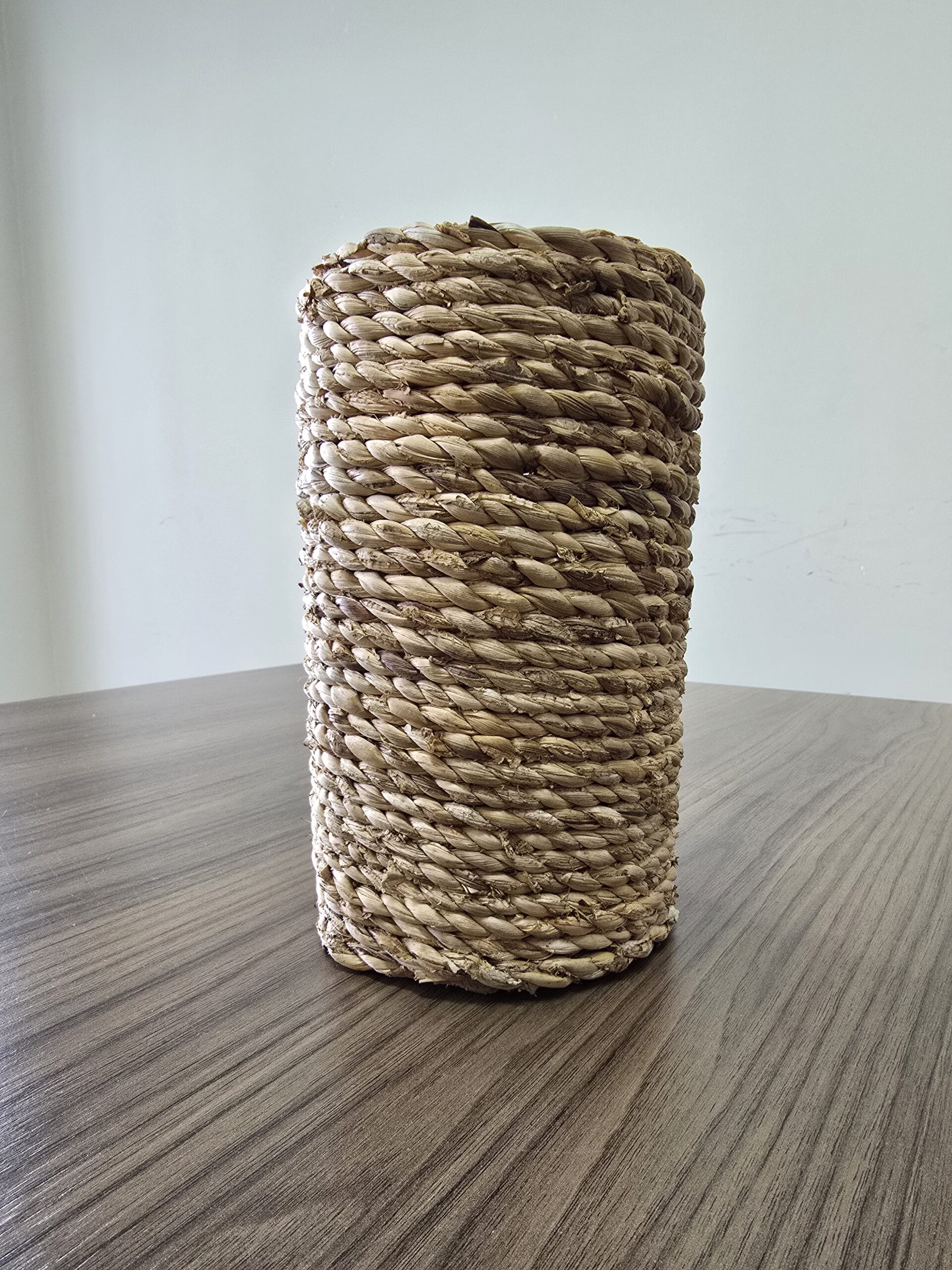 Com um design cilíndrico e acabamento artesanal, ele combina perfeitamente com arranjos secos, flores artificiais ou folhagens permanentes, trazendo aconchego e estilo para salas, halls, varandas, lavabos ou eventos.